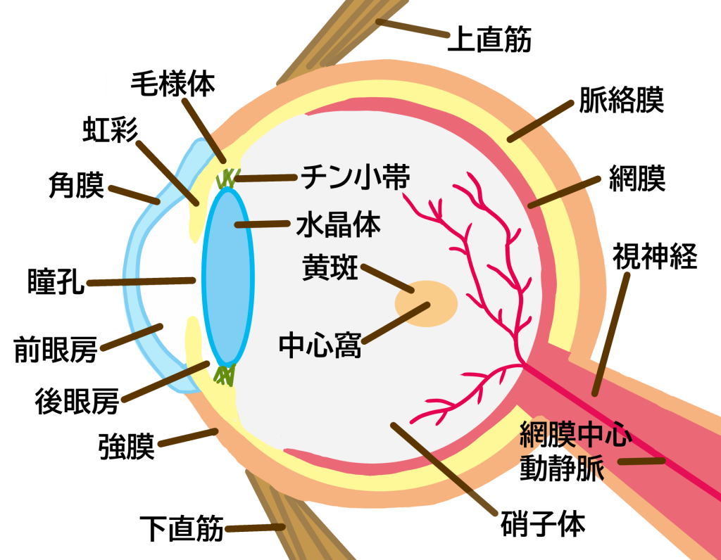 ここでは目の簡単な構造と働きを紹介しておきます。